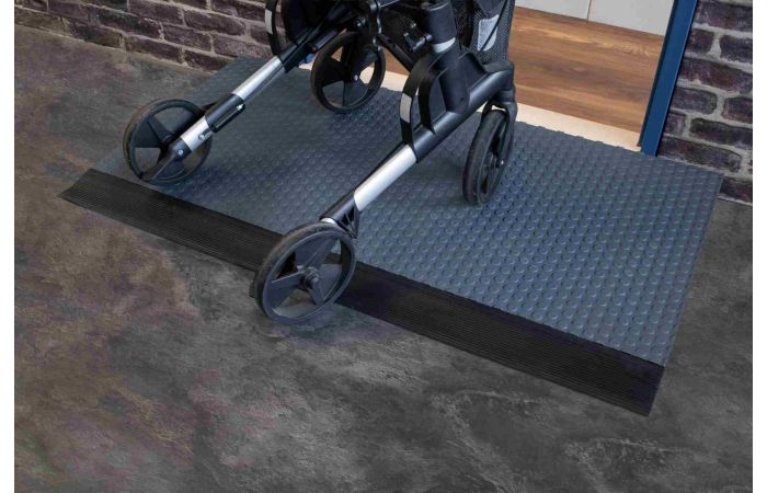 Robuuste drempelhulp 18 cm met antislip en geluidsarme toplaag. Op maat leverbaar en geschikt voor rolstoel, rollator en scootmobiel. Veilig en duurzaam.