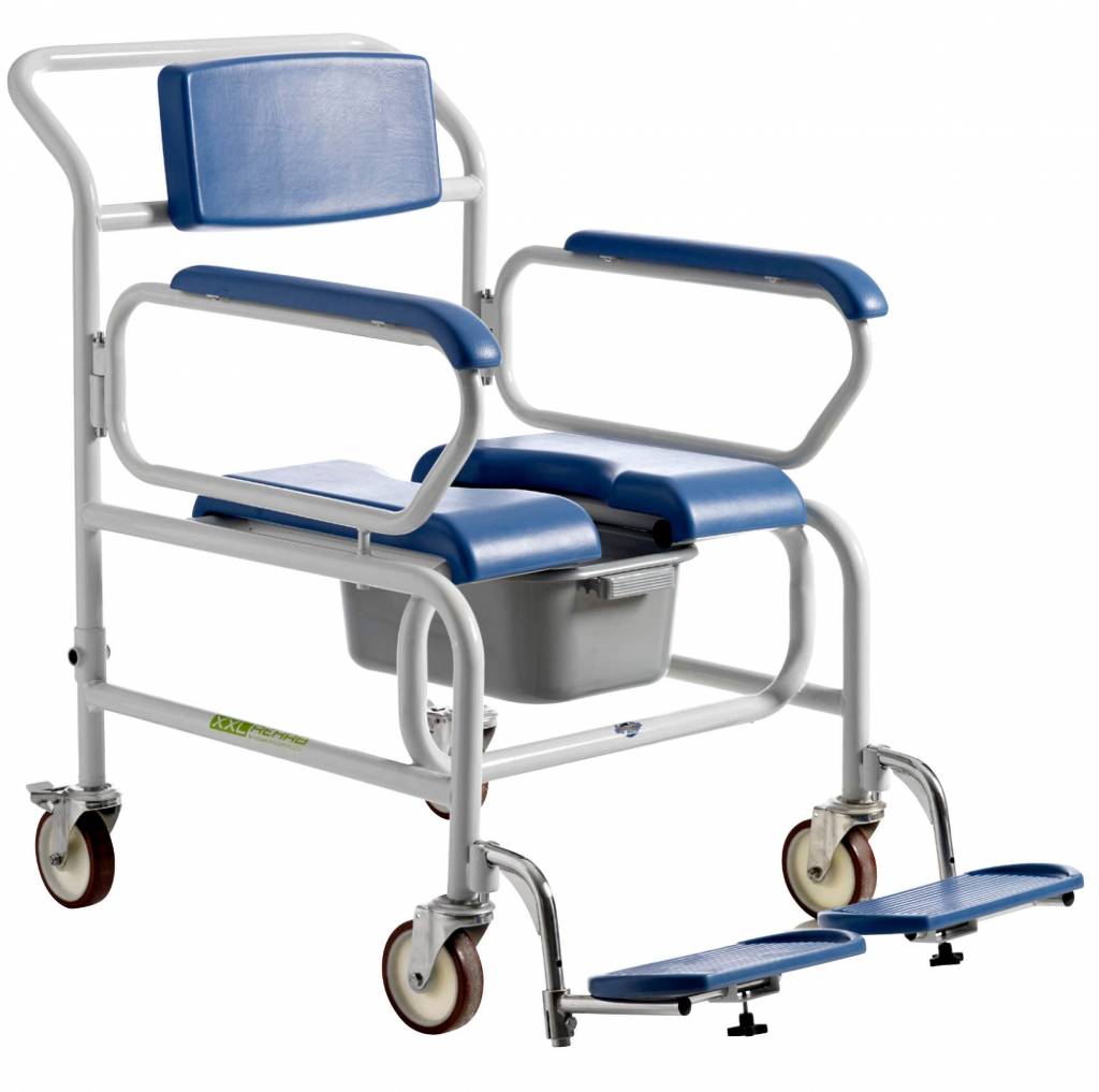 Verrijdbare XXL Douchestoel, die tevens als toiletstoel te gebruiken is.